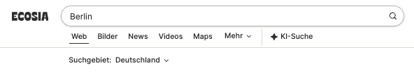 Überprüfe oder ändere deine Suchregion in den Ecosia-Einstellungen oder unterhalb der Suchleiste nach einer Suche.