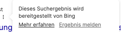Zu beachten ist, dass Ecosia weiterhin andere Anbieter nutzen kann. Die Quelle eines Ergebnisses lässt sich über die drei Punkte neben dem Ergebnis prüfen.